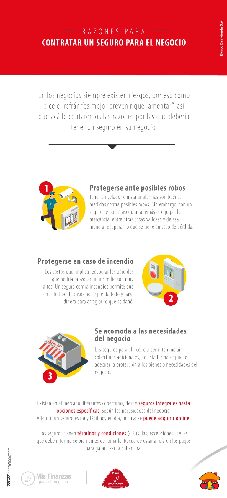 La información aquí presentada es de carácter informativo e ilustrativo, por lo que no deberá interpretarse como una asesoría, recomendación o sugerencia por parte de Banco Davivienda S.A. para la toma de decisiones de inversión o la realización de cualquier tipo de transacciones o negocios. La información y proyecciones mencionadas no deben ser tomadas como una garantía para proyecciones o resultados futuros. Cualquier cambio en las circunstancias actuales puede llegar a afectar la validez de la información o de las conclusiones presentadas. El uso de la información suministrada es de exclusiva responsabilidad del usuario. Banco Davivienda S.A. no se hace responsable por las decisiones que sean tomadas con base en la información aquí presentada, ni por sus efectos o consecuencias. Los valores, tasas de interés y demás datos que allí se encuentren son puramente informativos y no constituyen una oferta, ni una demanda en firme, para la realización de transacciones.