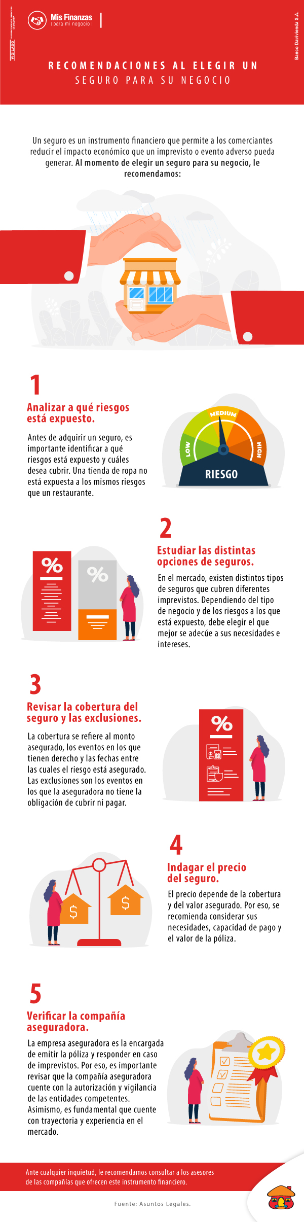 Los seguros son instrumentos financieros que ayudan a los comerciantes a protegerse, cuidar sus finanzas y conservar su patrimonio ante imprevistos que puedan surgir, reduciendo el impacto económico que traen situaciones adversas o inesperadas como: un robo, un incendio, un terremoto o incluso la pérdida de la vida.